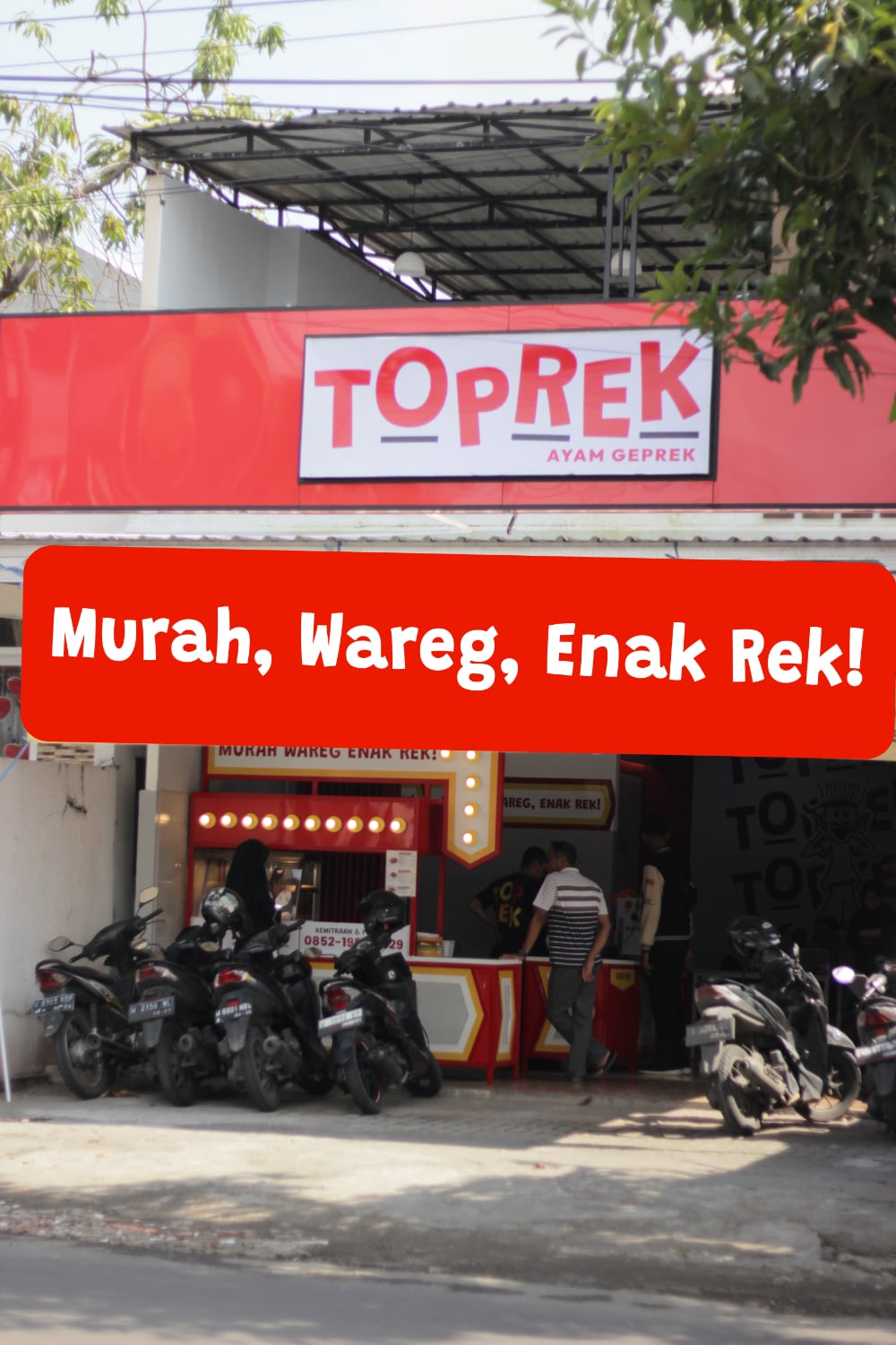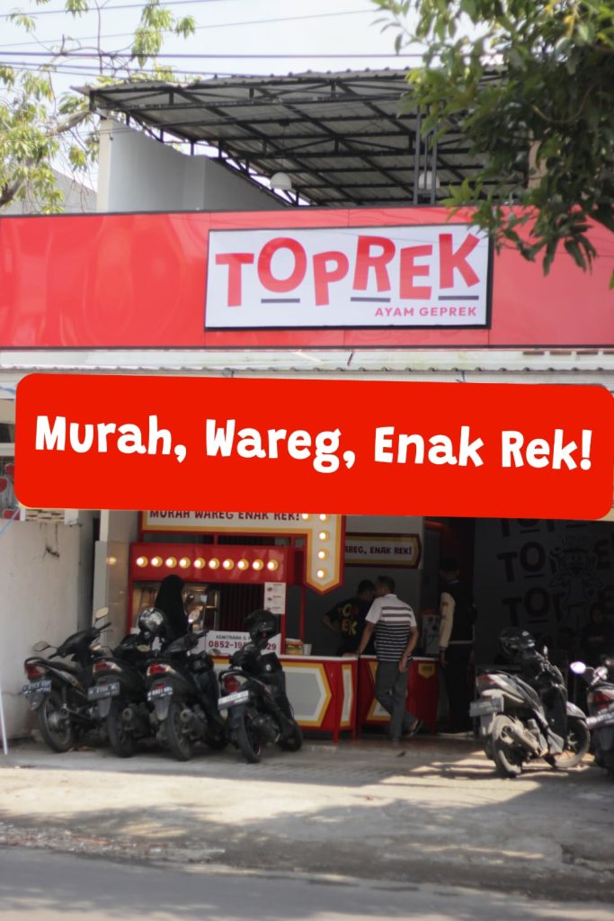 Toprek merupakan brand kuliner Ayam Geprek dengan konsep rombong yang stylish sesuai dengan tren terkini dan belum dimiliki kompetitor lainnya. Toprek memiliki varian sambal pedas dengan beberapa level yang dipadukan dengan ayam goreng krispi yang masih menjadi makanan populer bagi masyarakat Indonesia.